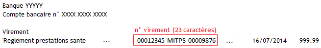 et le n° virement d'un règlement de la mutuelle en votre faveur.